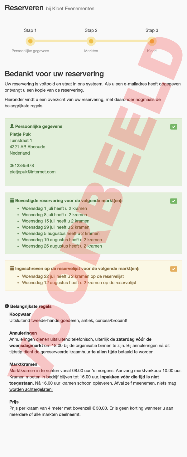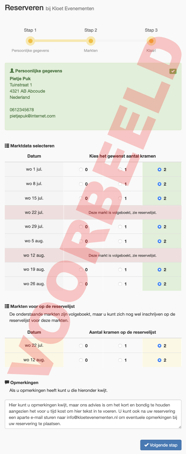 Hieronder kunt u alvast een voorbeeld zien hoe de reservering ongeveer zal verlopen.